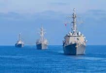 A Chinese destroyer sent to escort the USS Decatur on a ‘freedom of navigation’ sail-by in...
