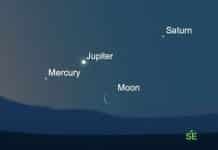 Jupiter, Saturn, and Mercury are visible in the pre-dawn sky this week, along with a crescent moon